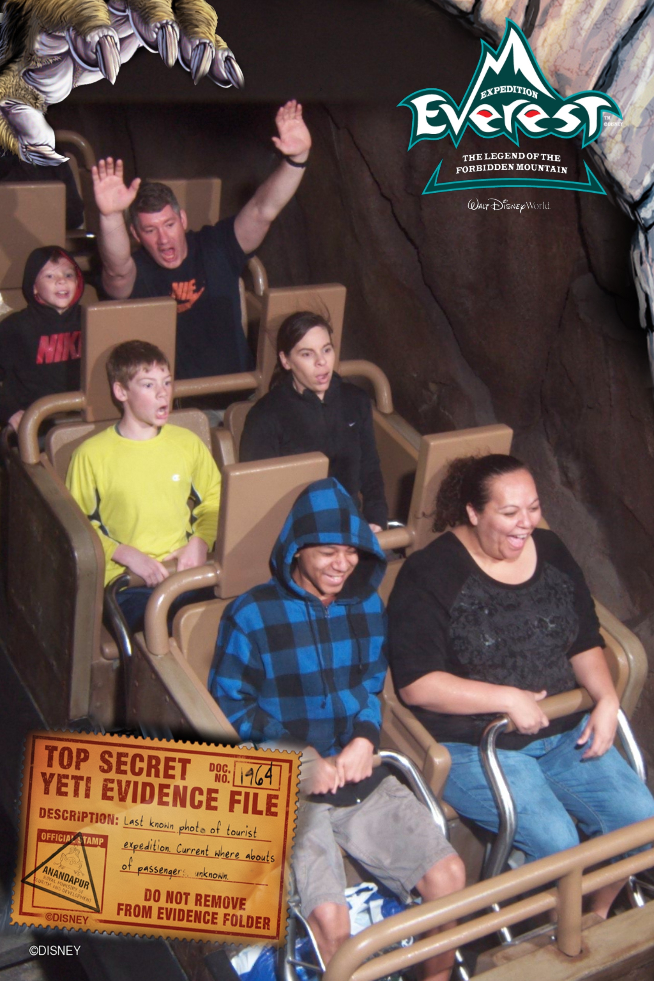 Then it was time to go get in the FastPass line! I checked on Zethan in the gift shop and then we went to get in line. The FP line was shorter than standby now. We timed it perfectly! We only waited about 5 minutes the second time. I’m glad we were in the front row the first time because this is how our second ride photo turned out on Everest that day: