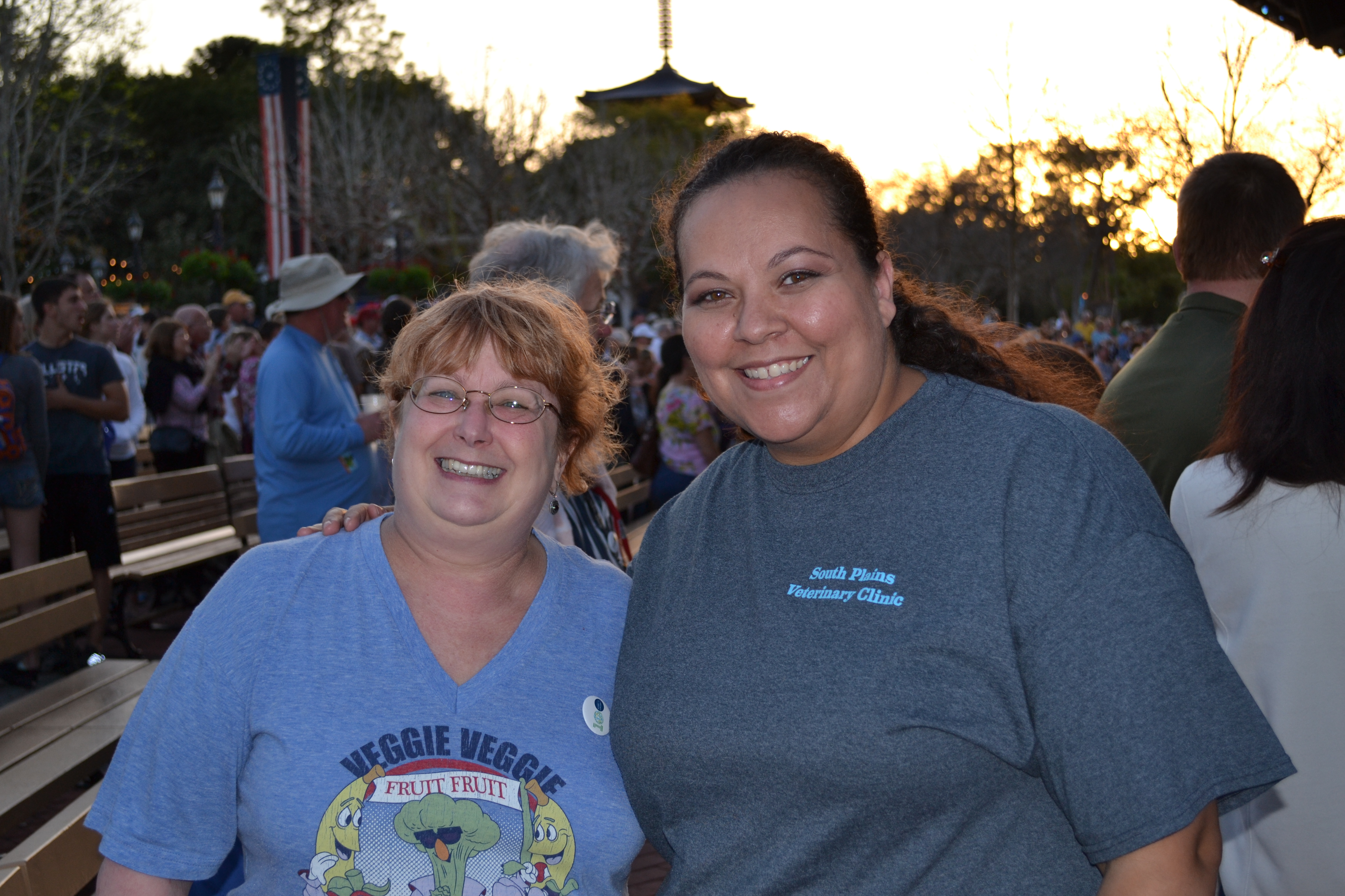 Here’s our scores after the first game, and the second picture is me and Deb from earlier in the week when we met at Epcot for the Micky Dolenz concert.