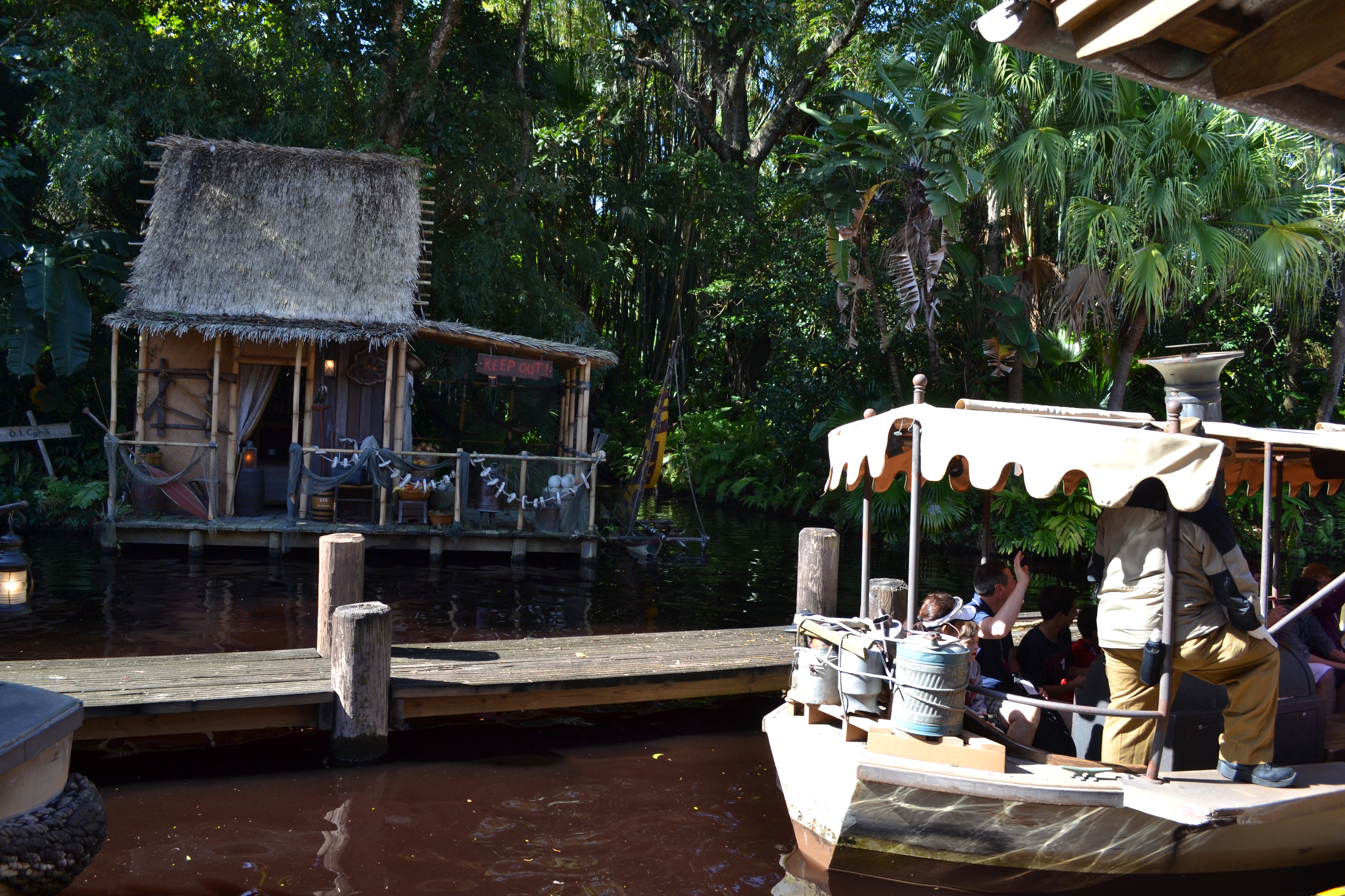 Ok, I’m getting off track! After we got done with Big Thunder, I think we had about an hour until our FastPass return time. I don’t remember for sure anymore… I do remember that I checked all of the line my apps on my phone and saw that Jungle Cruise only had a 20 minute wait, so I grabbed the boys by the hands and we skipped off to Jungle Cruise! …minus the skipping….oh, and no hand holding either… Jungle Cruise is yet ANOTHER ride that Zethan has never been on. Zadrin hadn’t been on it in several years so it seemed all brand new to him too. I love seeing my kids faces when they ride or see something new or that they hadn’t done in a long time. The humor of our boat driver/guide was cheesy as usual, but it still made everyone laugh and enjoy the ride!