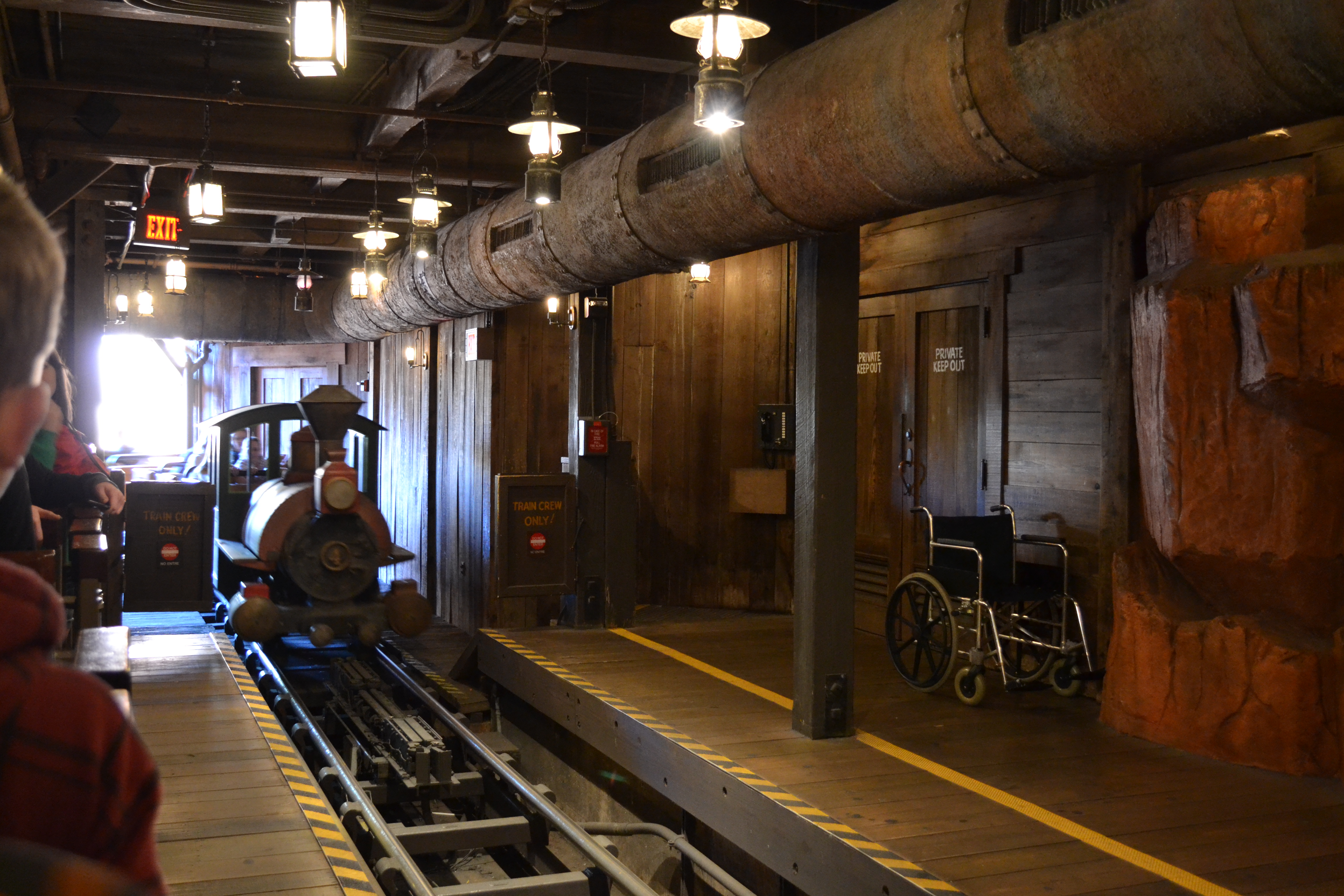 Now it was time to head to Frontierland and get a FastPass for Big Thunder Mountain Railroad. This ride was closed for refurbishment last year, so we were looking forward to riding it. It’s one of Zethan’s favorites so he was the most excited about being able to ride it! Of course, Splash Mountain was closed for refurb this time, so we still were missing out on that! Anywho, once we got over to Big Thunder we got FastPasses and decided to go ahead and get in the standby line since the posted wait time was 25 minutes. Anything under 30 minutes is awesome in my opinion, and we were going at a good pace still and staying just ahead of the crowds. We got lucky and the line moved really quickly! It was probably only a 15 minute wait. I didn’t even have time to take pictures out of the windows along the queue (I hate holding up the line by stopping when it’s moving quickly). The line didn’t stop moving until we were headed down the ramps that lead to where we load and unload the train/mini coaster. Zethan was so excited that he was kind of dancing around in his seat next to me.