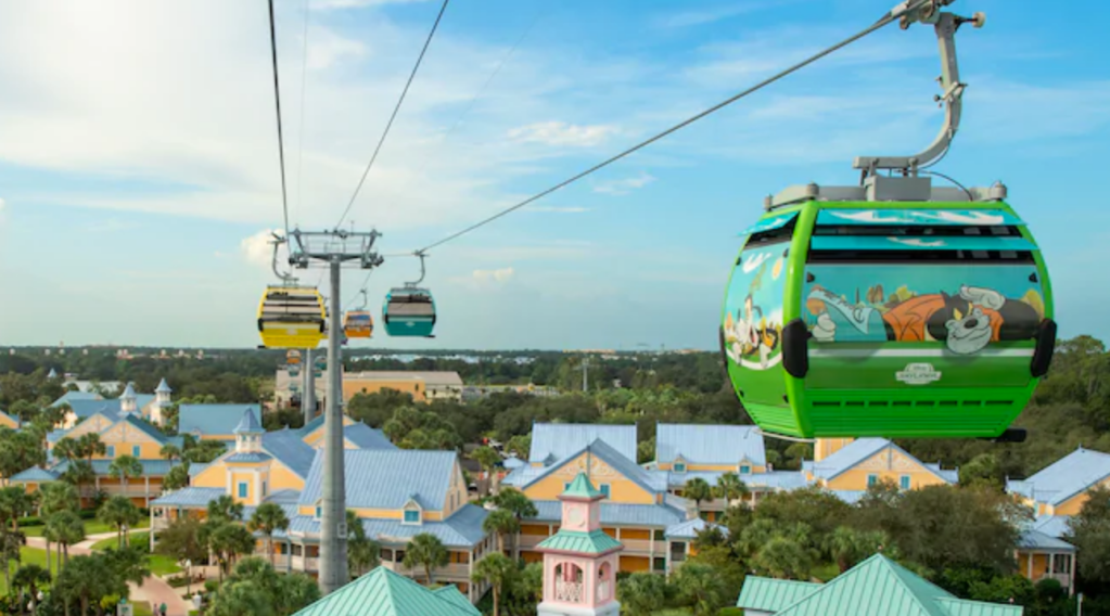 I admit that I was worried about trying to ride Disney’s Skyliner. Not because of the time it broke down and people were stranded on it for a few hours, but because I get motion sickness and I was concerned that it would sway too much and leave me feeling nauseous. Luckily, that didn’t happen when I rode it in November 2019, but I will say the “landing” makes me brace myself every time.