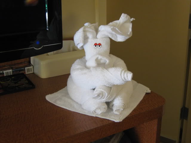 Maybe it’s all the sugar from the two glasses of sweet tea that I just drank, but now I want to delve into the Disney towel animal topic and do a mini documentary about it. You probably hope I’m kidding, but I’m not. °O°