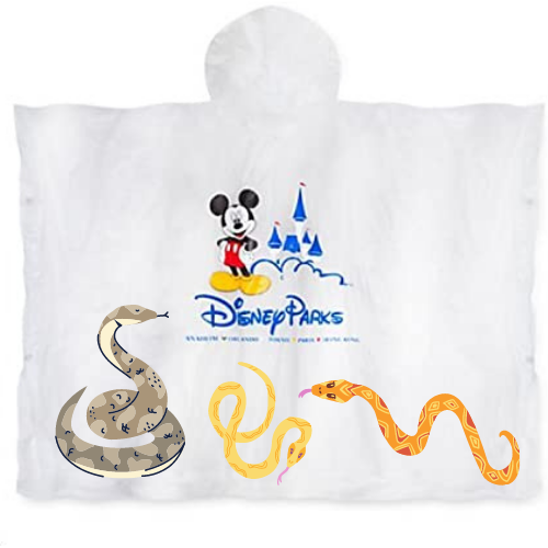 Anyway, I’m digging around and going through the box when all of a sudden there were 5 or 6 brand new Disney World rain ponchos. I asked this dream frenemy why they had/brought Disney World ponchos and he shrugged. He told me I could have them because he was never going to go to Disney World (cuz clearly that’s the only use for them…) and I was SOOOOOO excited in my dream that I didn’t even care that a baby rattlesnake slithered right past me to hide in my bedroom closet.