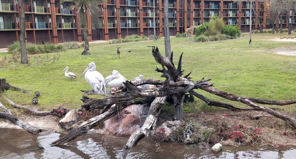 We rented a car from the airport for this trip and had already stopped at a store to buy some groceries and other items for the week, and after we checked into the resort, we walked around Jambo House a bit and went to the savanna area to see some of the animals.