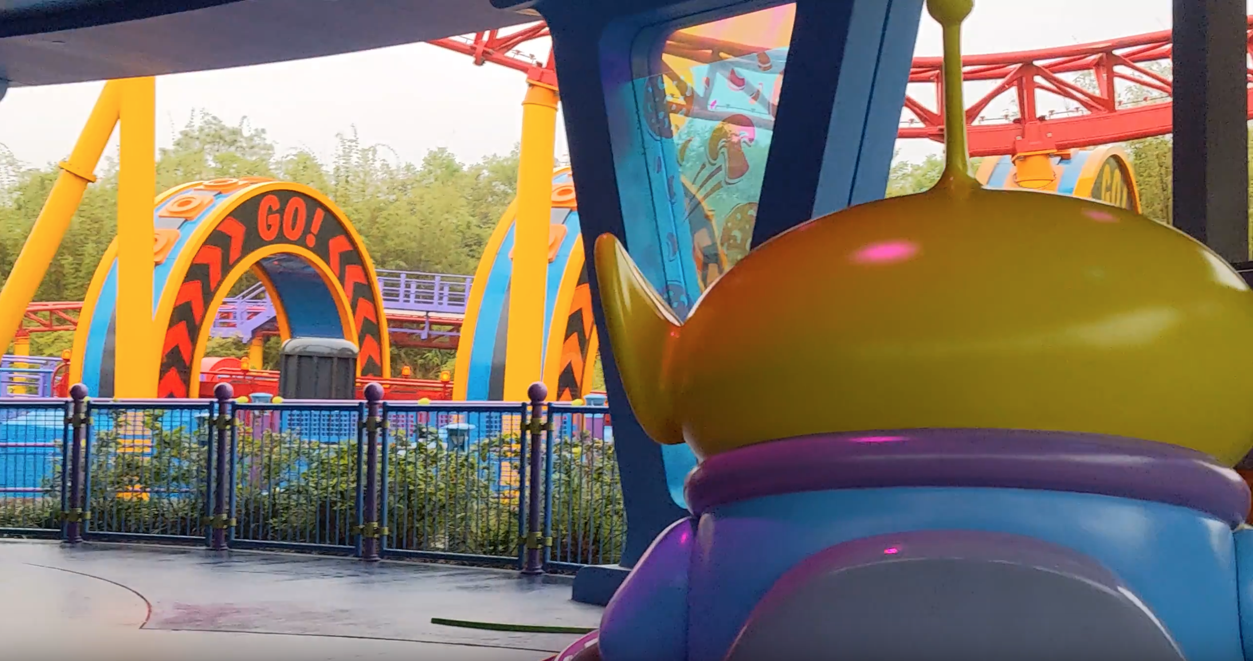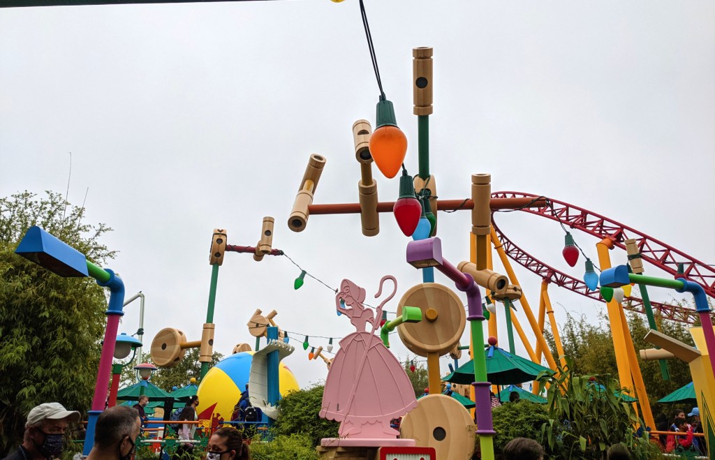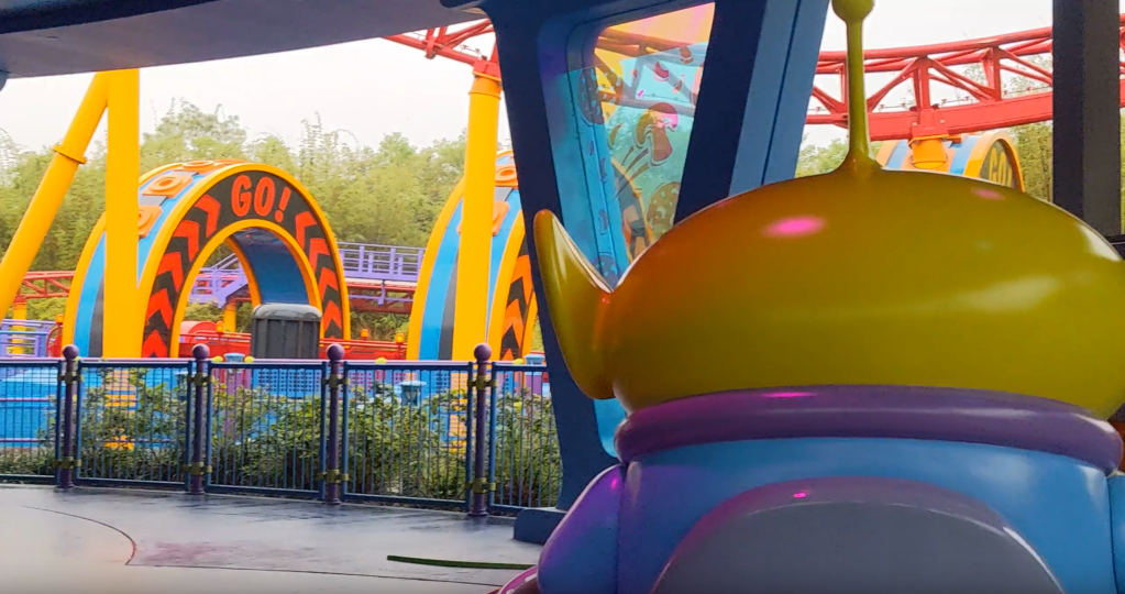 We got to Hollywood Studios right around 9:00 but they had been letting people in for probably around 30-40 minutes already so there were already some higher wait times at the more popular rides. And by higher, I mean over an hour, which really isn’t that bad considering in non-pandemic times some of these wait times get up to over 2 hours. Since Sasha is a big Toy Story Fan, we ended up heading to Toy Story Land first. Toy Story Mania had the lowest wait time of the rides in this area so we got in line there and were on the ride within about 15-20 minutes. After that, we contemplated getting in the line for Slinky Dog Dash but it was about 85 minutes, so we decided to go ahead and do Alien Swirling Saucers instead.