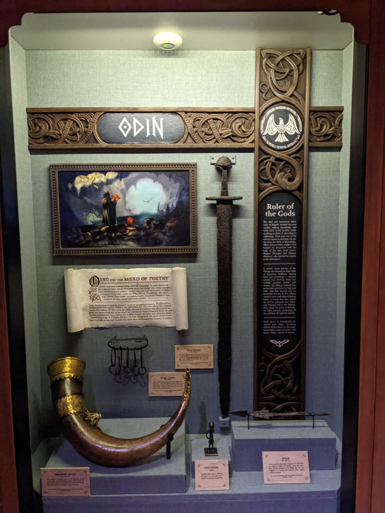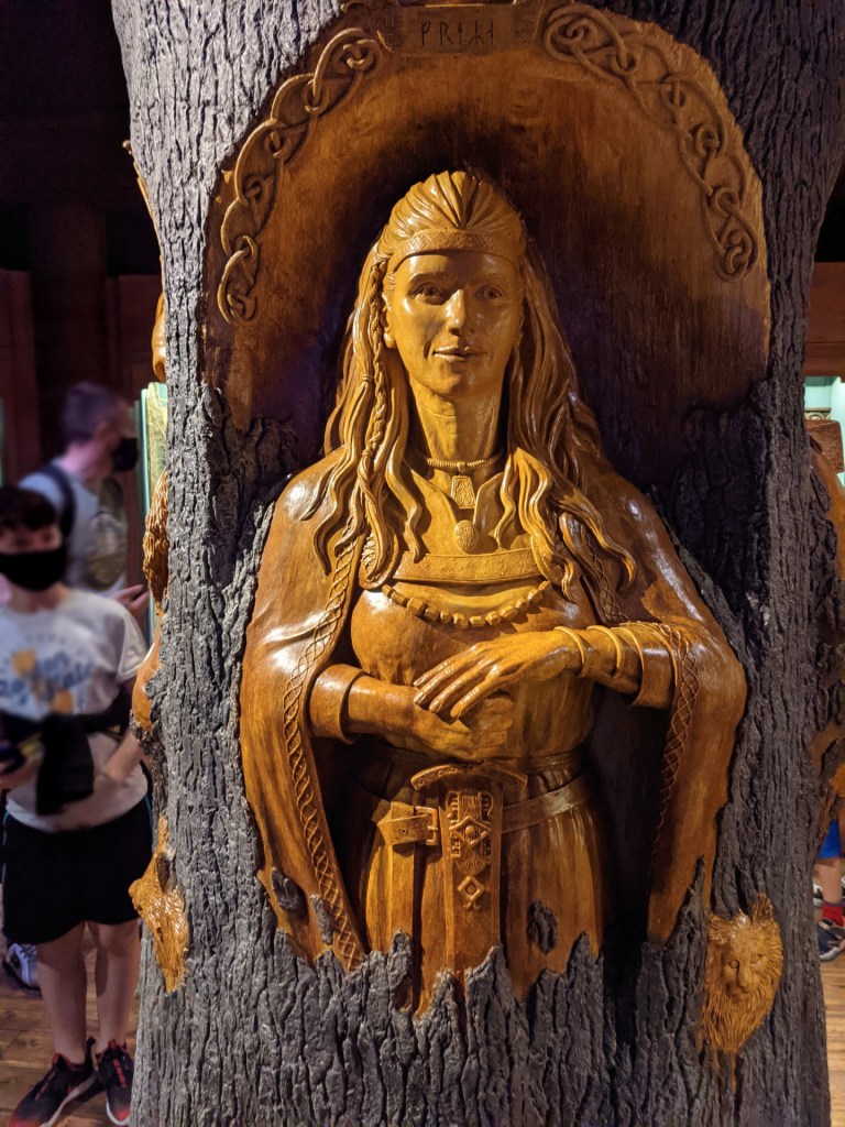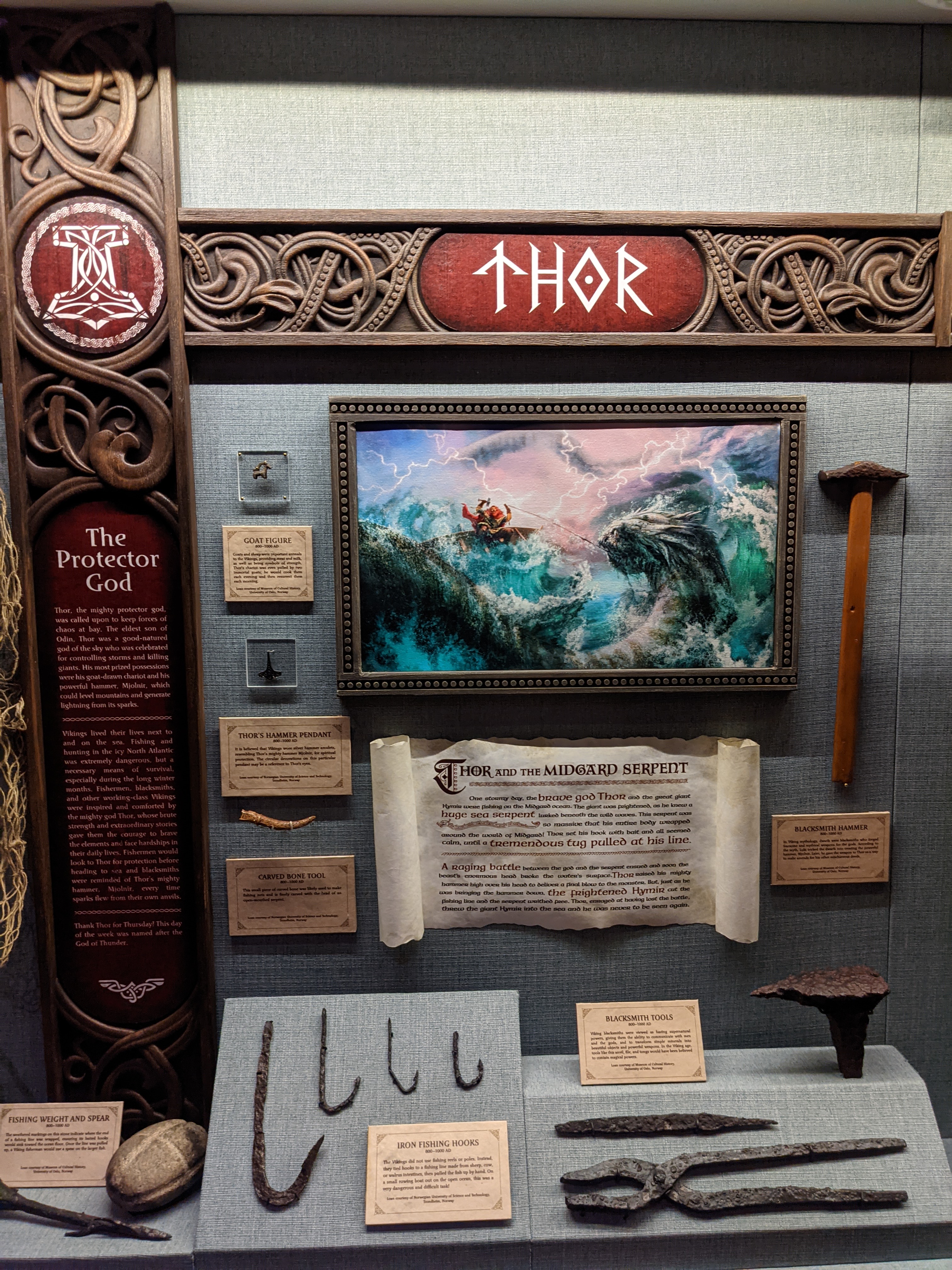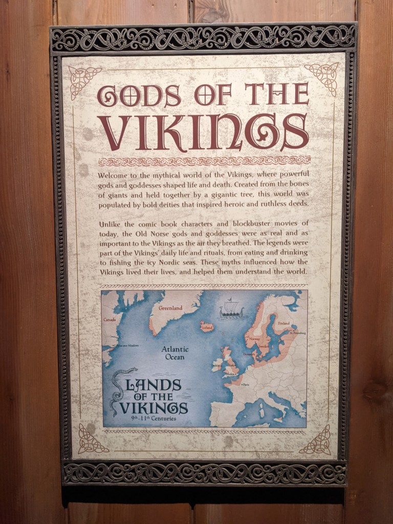 Once we got off of the ride, we looked around in the gift shop for a bit and then went into the stave church. Sorry Frozen fans, but I was very happy to see that the Frozen themed exhibit was gone from inside the church. I really like seeing the Gods of the Vikings exhibit!