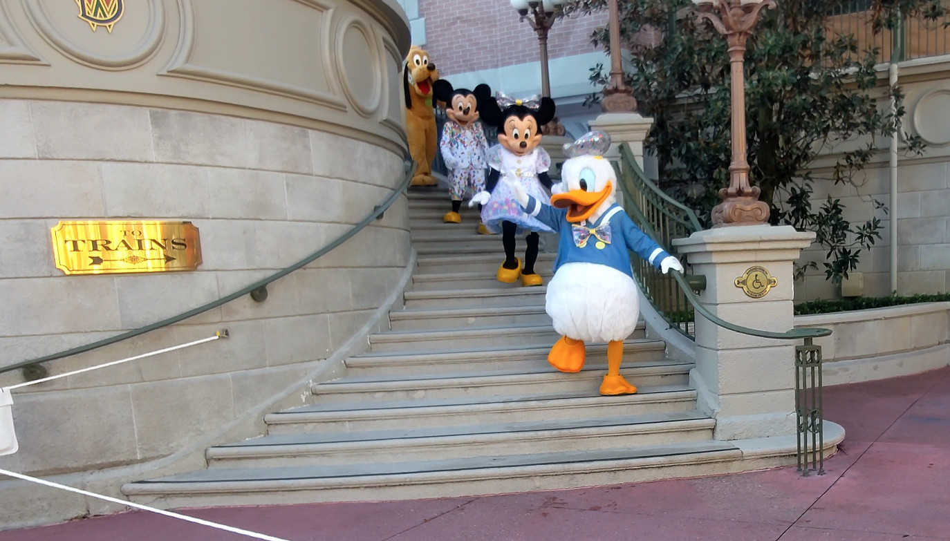 I could already tell that Magic Kingdom was going to be busier than the other two parks we already visited, but that’s just how it is normally anyway. Right after we entered the park, Mickey and Friends were up in the train station area greeting guests. I don’t really care that much about seeing characters all the time but I knew Sasha and Chastity would enjoy seeing them, so it was great that the characters came down the steps right after we walked in. We enjoyed an up close and almost personal view!