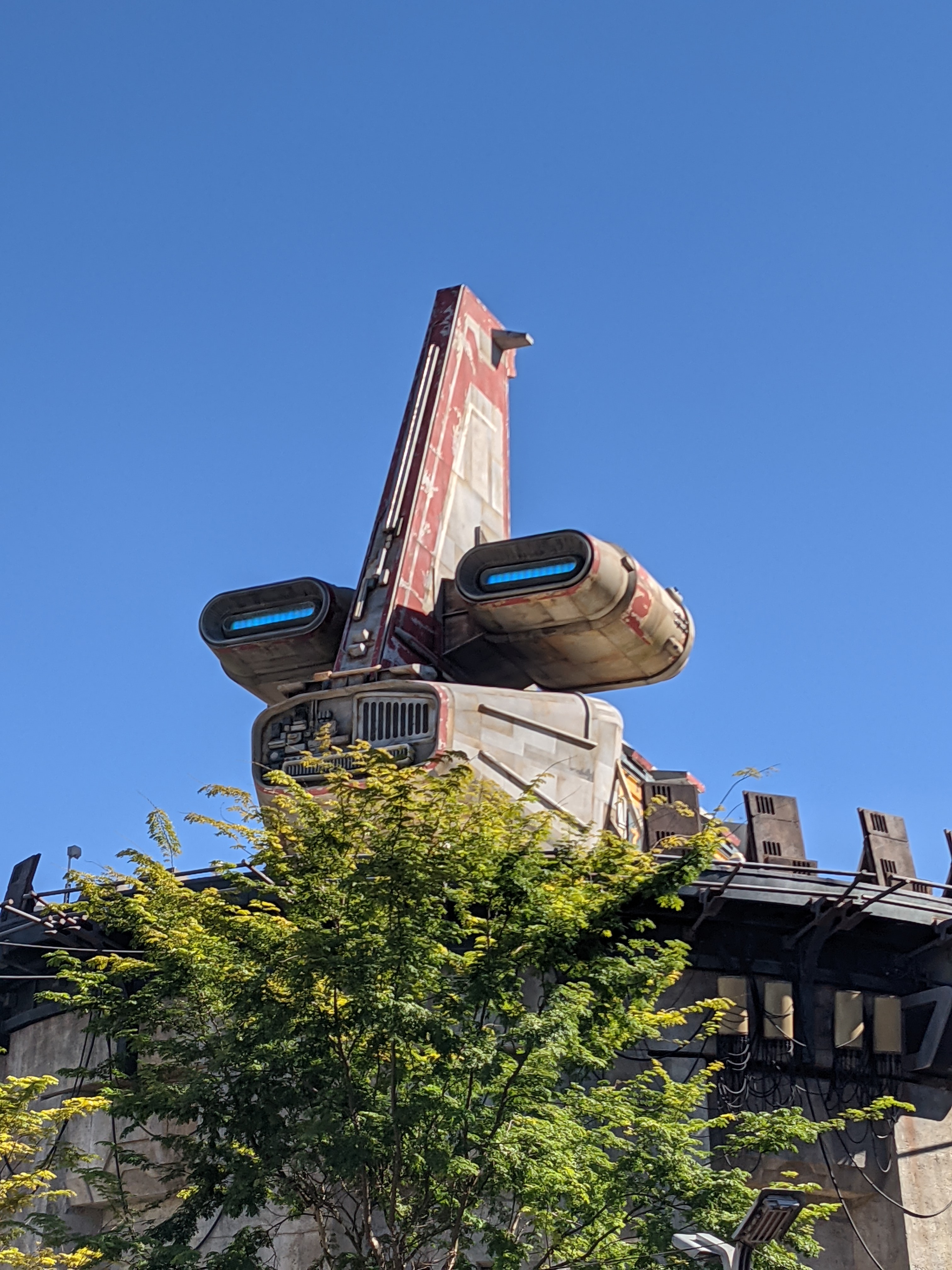 Hello! It’s time for Cheat Day, where I still post but it’s this random message instead of a better version of a blog post. Today there’s this picture of this ship on top of Docking Bay 7 Food and Cargo in Galaxy’s Edge at Disney’s Hollywood Studios.