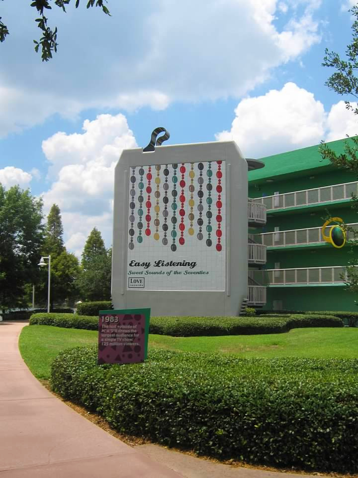 I wasn’t able to post my next trip report post last Tuesday, but now it’s Sunday which means it’s time for Cheat Day! Cheat Day is where I still post but it’s this random message instead of a better version of a blog post. Today there’s this picture of an 8 Track Tape icon on the end of a building in the 70s section of Disney World’s Pop Century resort.